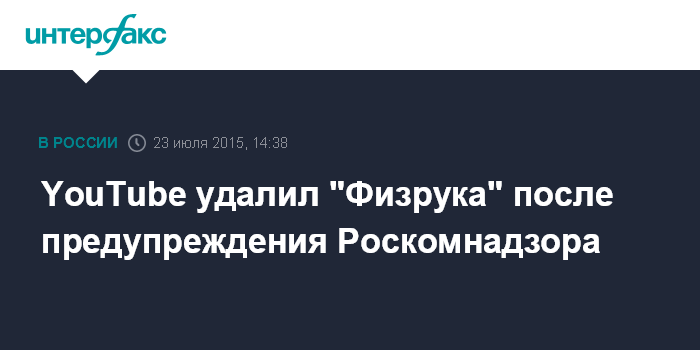 Москва. 23 июля. INTERFAX.RU - На видеохостинге YouTube, в адрес которого Роскомнадзор вынес предупреждение о нарушении авторских прав, удалена противоправная информация, сообщила в четверг пресс-служба ведомства.