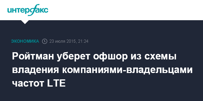 Ройтман уберет офшор из схемы владения компаниями-владельцами частот LTE