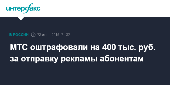 МТС оштрафовали на 400 тыс. руб. за отправку рекламы абонентам