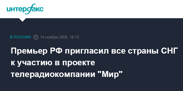 Премьер РФ пригласил все страны СНГ к участию в проекте телерадиокомпании "Мир"