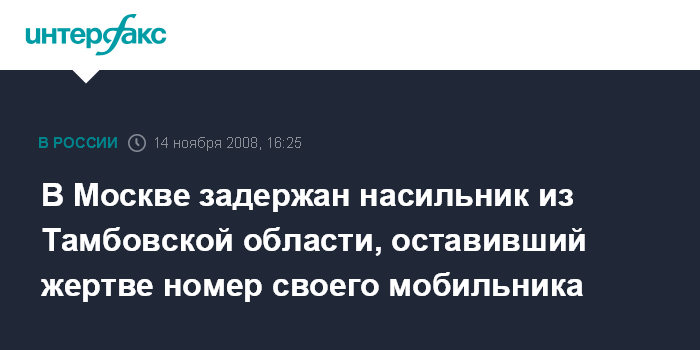 В Москве задержан насильник из Тамбовской области, оставивший жертве номер своего мобильника