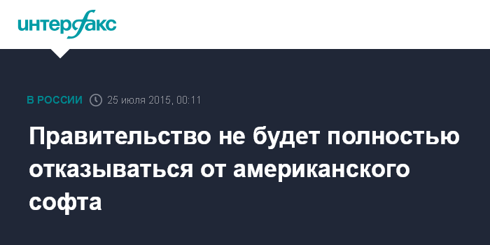 Москва. 25 июля. INTERFAX.RU - Правительство РФ не планирует полностью отказываться от американского программного обеспечения, но частично будет регулировать госзакупки в этой сфере, заявил премьер-министр РФ Дмитрий Медведев.