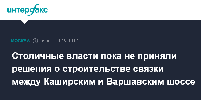 Столичные власти пока не приняли решения о строительстве связки между Каширским и Варшавским шоссе