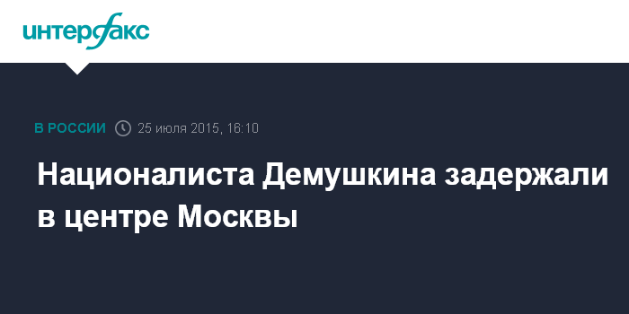 Москва. 25 июля. INTERFAX.RU - Полиция в субботу задержала в центре Москвы лидера националистического объединения "Русские" Дмитрия Демушкина.