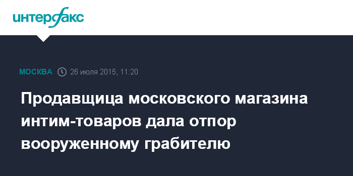 Москва. 26 июля. INTERFAX.RU - Продавец магазина эротических товаров в Москве дала отпор грабителю с пистолетом, сообщили "Интерфаксу" в пресс-службе столичного главка полиции.