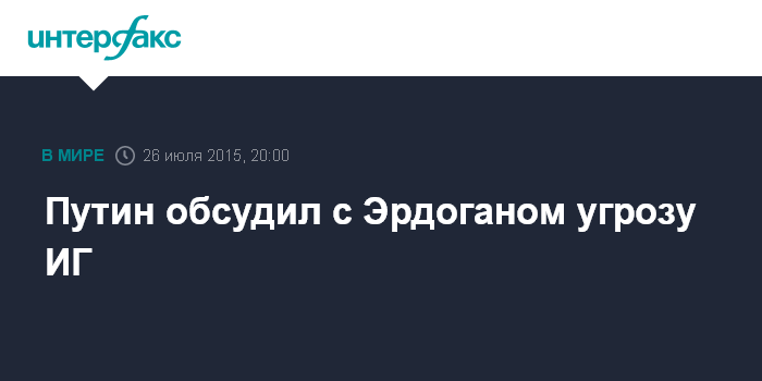 Москва. 26 июля. INTERFAX.RU - По инициативе турецкой стороны в воскресенье состоялся телефонный разговор президента РФ Владимира Путина с президентом Турецкой Республики Реджепом Тайипом Эрдоганом, сообщает пресс-служба Кремля.
