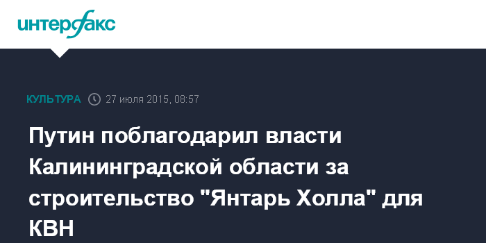 Путин поблагодарил власти Калининградской области за строительство "Янтарь Холла" для КВН