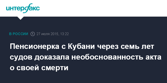 Пенсионерка с Кубани через семь лет судов доказала необоснованность акта о своей смерти