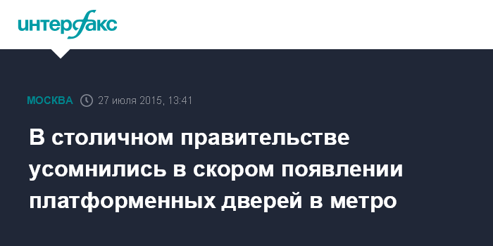 Москва. 27 июля. INTERFAX.RU - Установка раздвигающихся дверей на платформах станций столичного метро может начаться не раньше, чем через пару лет, сообщил в интервью "Интерфаксу" руководитель департамента строительства Москвы Андрей Бочкарев в понедельник.
