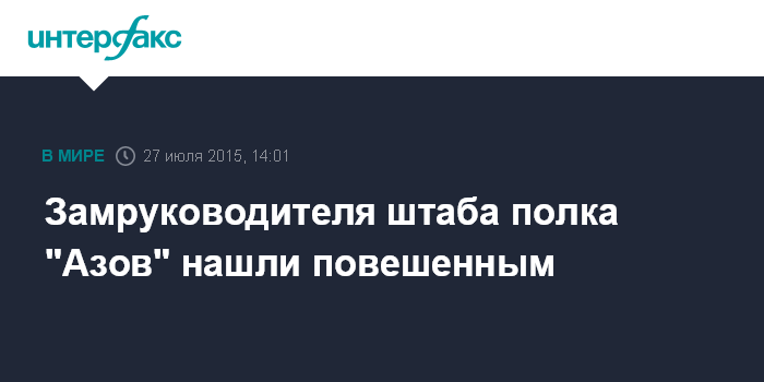 Москва. 27 июля. INTERFAX.RU - Заместитель руководителя штаба гражданского корпуса полка "Азов" Ярослав Бабич найден мертвым в собственной квартире.