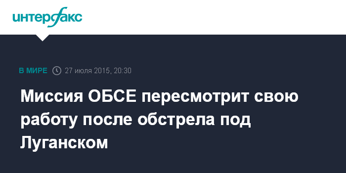 Москва. 27 июля. INTERFAX.RU - Специальная мониторинговая миссия ОБСЕ пересмотрит свою деятельность в зоне проведения силовой операции на востоке Украины, в том числе в связи с инцидентом возле города Счастье Луганской области, когда представители миссии попали под обстрел.