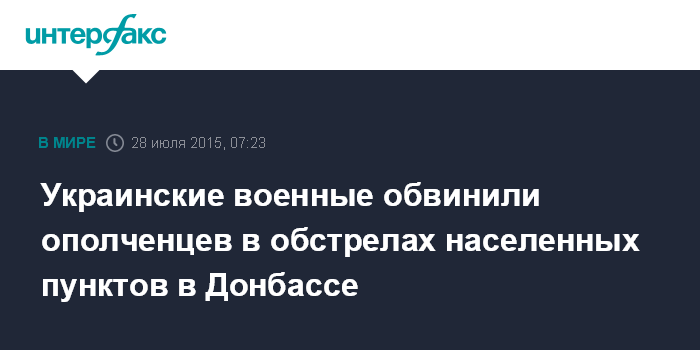 Украинские военные обвинили ополченцев в обстрелах населенных пунктов в Донбассе