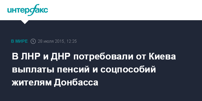 В ЛНР и ДНР потребовали от Киева выплаты пенсий и соцпособий жителям Донбасса