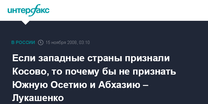 Если западные страны признали Косово, то почему бы не признать Южную Осетию и Абхазию – Лукашенко