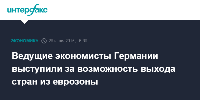 Москва. 28 июля. INTERFAX.RU – Независимый совет экономистов при правительстве Германии высказался за возможность выхода стран из еврозоны, сообщает Deutsche Welle.