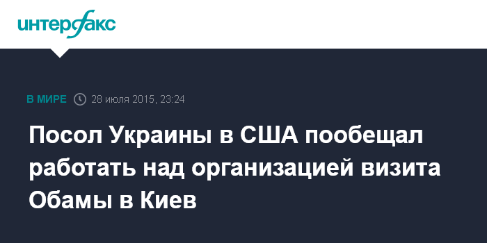 Москва. 28 июля. INTERFAX.RU - Посол Украины в США Валерий Чалый пообещал работать над организацией визита президента США на Украину, а также президента Украины в США.