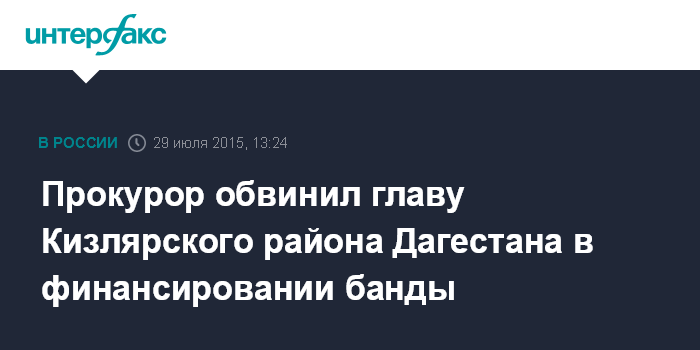 Прокурор обвинил главу Кизлярского района Дагестана в финансировании банды