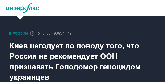 Киев негодует по поводу того, что Россия не рекомендует ООН признавать Голодомор геноцидом украинцев