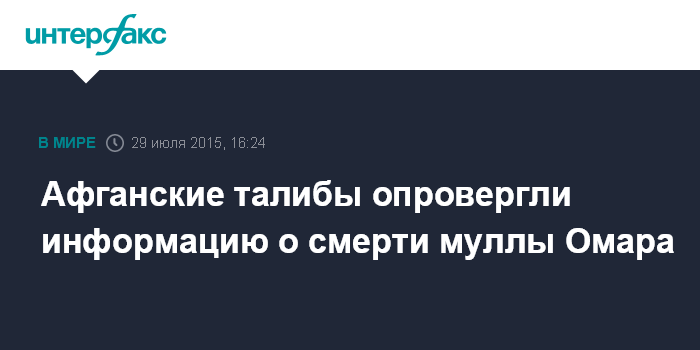 Москва. 29 июля. INTERFAX.RU - Представитель движения "Талибан" опроверг информацию о кончине главаря талибов муллы Омара, передает в четверг британский телеканал Sky News.