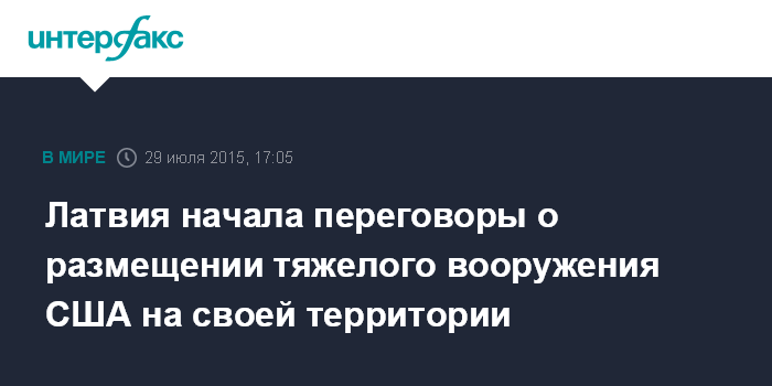 Москва. 29 июля. INTERFAX.RU - Власти Латвии начали официальные переговоры с США о размещении американского тяжелого вооружения на военной базе в Адажи, сообщили агентству BNS в латвийском Минобороны.
