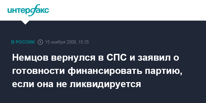Немцов вернулся в СПС и заявил о готовности финансировать партию, если она не ликвидируется