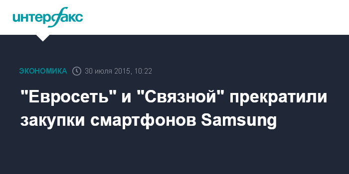 Москва. 30 июля. INTERFAX.RU – "Евросеть" и "Связной", а также розничные сети их основных партнеров "Мегафона" и "Вымпелкома" месяц назад прекратили закупать смартфоны Samsung, пишут "Ведомости" со ссылкой на сотрудников ритейлеров. Эту информацию газете подтвердил президент "Евросети" Александр Малис, пояснив, что причиной такого решения стала большая доля бракованных телефонов в поставках.