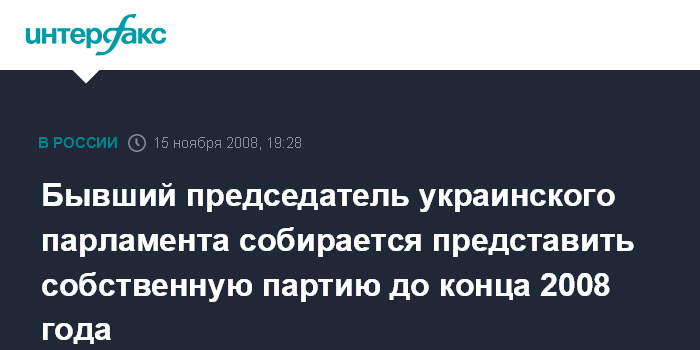 Бывший председатель украинского парламента собирается представить собственную партию до конца 2008 года