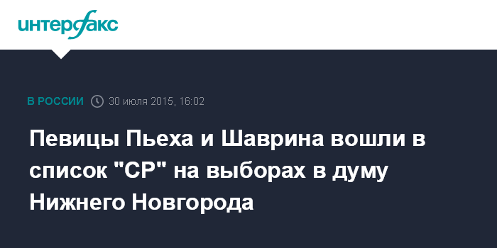 Москва. 30 июля. INTERFAX.RU - Народная артистка СССР Эдита Пьеха и народная артистка России Екатерина Шаврина вошли в муниципальный список партии "Справедливая Россия" на сентябрьских выборах в городскую думу Нижнего Новгорода.