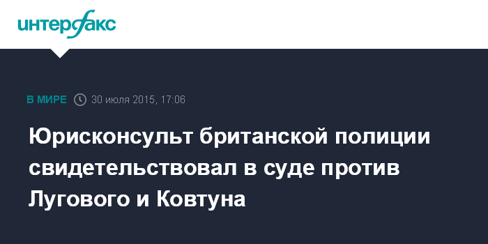 Юрисконсульт британской полиции свидетельствовал в суде против Лугового и Ковтуна