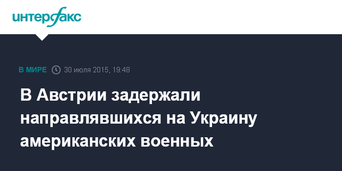 Москва. 30 июля. INTERFAX.RU - Власти Австрии задержали в международном аэропорту Вены девять морских пехотинцев США, направлявшихся на Украину на военные учения, сообщает в четверг американское издание Stars and Stripes.