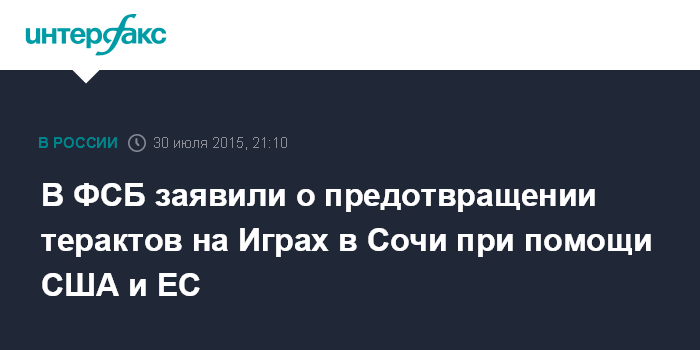 В ФСБ заявили о предотвращении терактов на Играх в Сочи при помощи США и ЕС