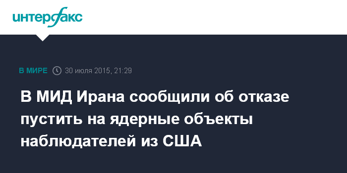 "Инспекторы из США и из Канады не смогут быть направлены в Иран. В соглашении (между Ираном и "шестеркой" - ИФ) упомянуто, что инспекторы должны быть из стран, у которых установлены дипломатические отношения с Исламской республикой Иран", - сообщил он, отметив, что и "экспертов МАГАТЭ также не допустят до чувствительной и военной документации".