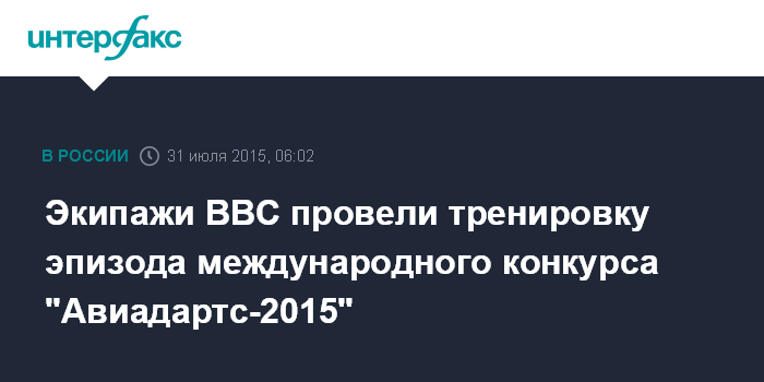 Москва. 31 июля. INTERFAX.RU - Летчики Военно-воздушных сил провели тренировочные полеты в рамках подготовки к конкурсу "Авиадартс-2015", выполнив программу тактического эпизода "Авиамикс", сообщили в пресс-службе Минобороны РФ.