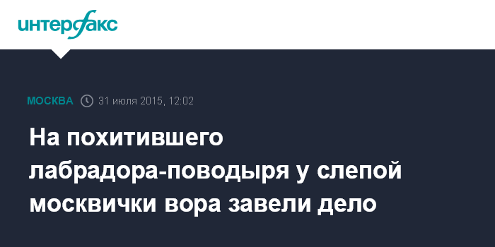 "Московская полиция возбудила уголовное дело о краже собаки-поводыря у слепой девушки", - сказал сотрудник пресс-службы.