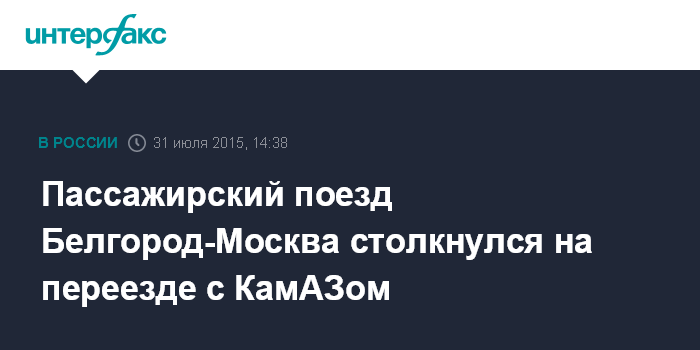 Москва. 31 июля. INTERFAX.RU - Пассажирский поезд Белгород - Москва столкнулся с КамАЗом в Прохоровском районе Белгородской области. Водитель грузовика и помощник машиниста получили тяжелые травмы, сообщил "Интерфаксу" источник в экстренных службах.