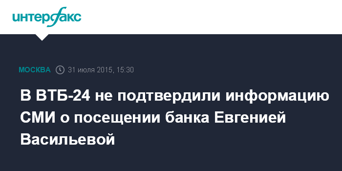В ВТБ-24 не подтвердили информацию СМИ о посещении банка Евгенией Васильевой