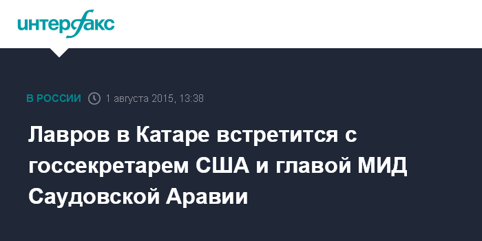 Также отмечается, что "в рамках пребывания Сергея Лаврова в Дохе запланирована его встреча в трехстороннем формате с госсекретарем США Джоном Керри и министром иностранных дел Саудовской Аравии Адель аль-Джубейром".