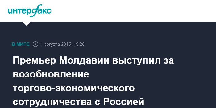 Москва. 1 августа. INTERFAX.RU - Премьер-министр Молдавии Валерий Стрелец высказался за восстановление сотрудничества и развитие отношений с Российской Федерацией.