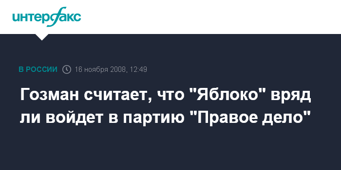 Гозман считает, что "Яблоко" вряд ли войдет в партию "Правое дело"