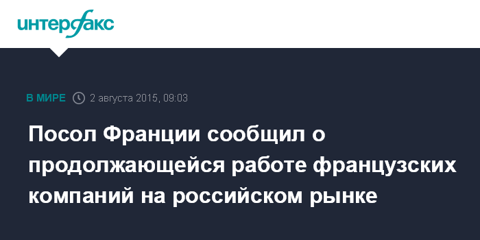 Посол Франции сообщил о продолжающейся работе французских компаний на российском рынке