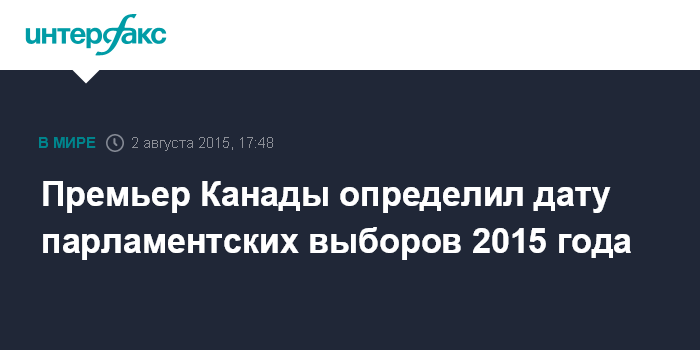 Москва. 2 августа. INTERFAX.RU - Премьер-министр Канады Стивен Харпер в воскресенье сообщил о роспуске нижней палаты парламента и о назначении парламентских выборов на 19 октября, сообщает канадская телерадиокомпания CBC.