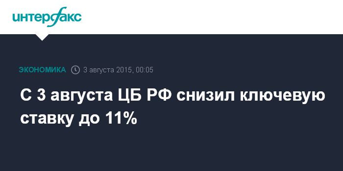 С 3 августа ЦБ РФ снизил ключевую ставку до 11%