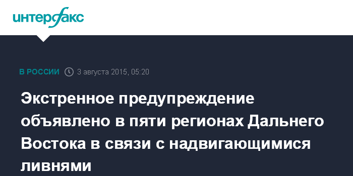 Экстренное предупреждение объявлено в пяти регионах Дальнего Востока в связи с надвигающимися ливнями