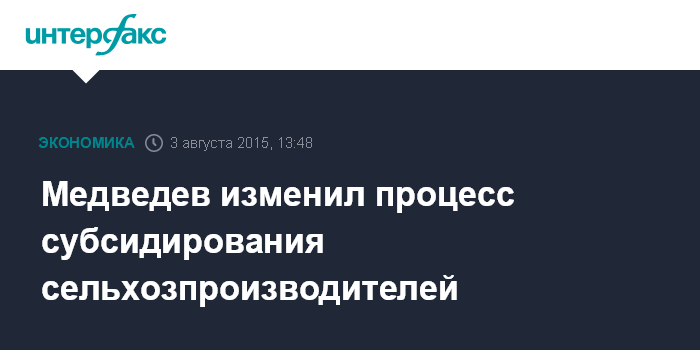 Москва. 3 августа. INTERFAX.RU – Премьер Дмитрий Медведев сообщил, что подписал постановление об изменении правил предоставления и распределения субсидий на нужны аграриев. Изменения вступили в силу с 3 августа. По словам Медведева, они обеспечат сельхозпроизводителям дополнительную государственную поддержку.