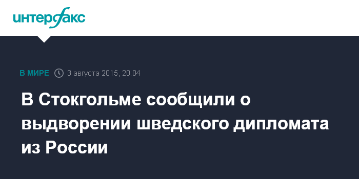 В сообщениях приводятся высказывания представителя МИД Швеции Юхана Тегеля, отметившего, что таким образом Москва отреагировала на недавнее выдворение со шведской территории российского дипломата.