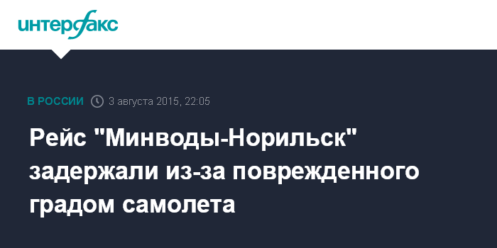 Рейс "Минводы-Норильск" задержали из-за поврежденного градом самолета