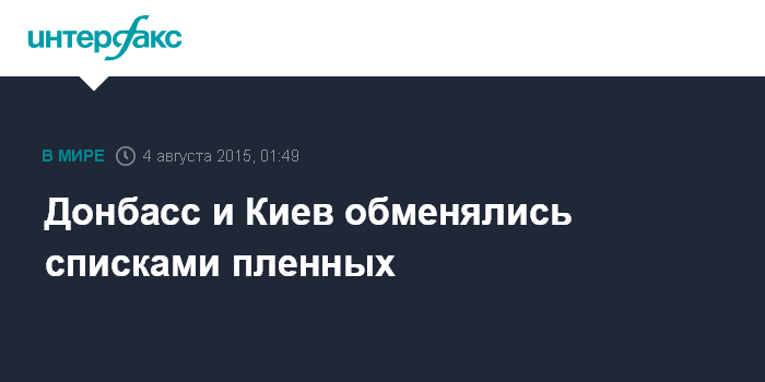 Москва. 4 августа. INTERFAX.RU - Полпред ДНР на переговорах Денис Пушилин заявил, что самопровозглашенные республики Донбасса обменялись с Киевом списками пленных и призвал к скорейшему обмену.