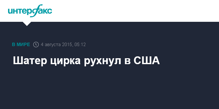 Москва. 4 августа. INTERFAX.RU - Шатер установленного на ярмарке цирка в городе Ланкастере штата Нью-Гэмпшир США рухнул во время представления, погибли два человека, не менее 15 получили ранения, сообщили местные СМИ.