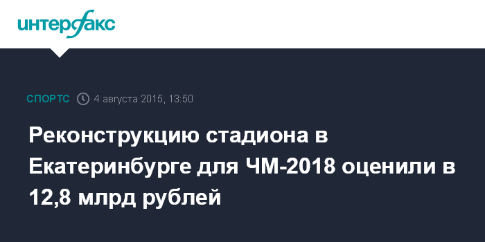Реконструкцию стадиона в Екатеринбурге для ЧМ-2018 оценили в 12,8 млрд рублей