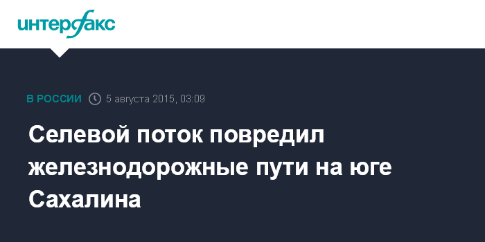 Москва. 5 августа. INTERFAX.RU - Селевой поток сошел в Холмском районе на железнодорожные пути в среду в результате проливных дождей, которые вторые сутки идут на юге Сахалина, сообщает пресс-служба ГУ МЧС региона.